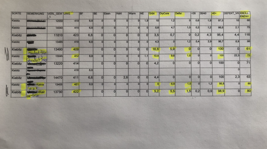 Wirkung von Kairos in Kombination mit einer standart Beize, bei der Verarbeitungskartoffel Kiebitz (2024). Bekommen von einem Kunden.